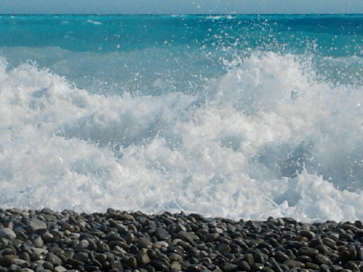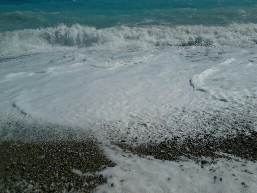 elle brasse les galets d’un flot laiteux qu’elle semble avoir tiré de la mamelle de la terre